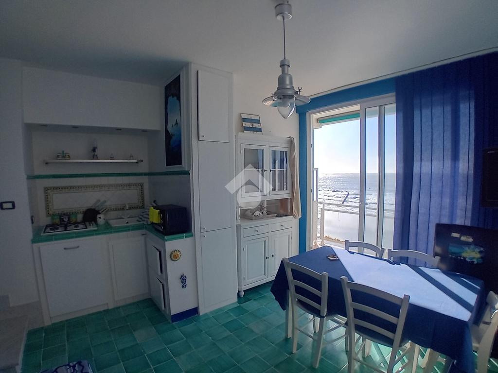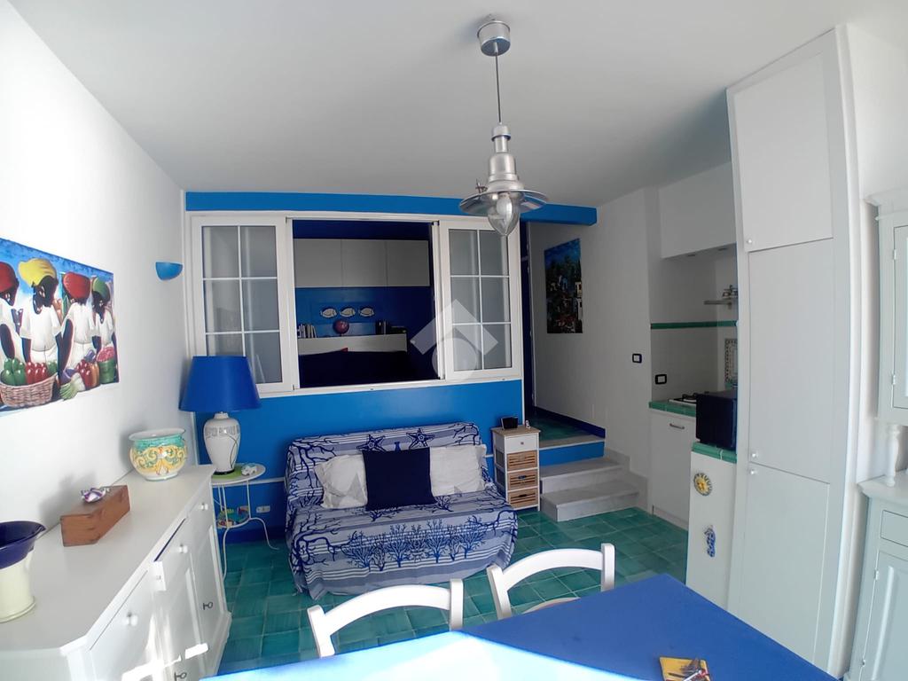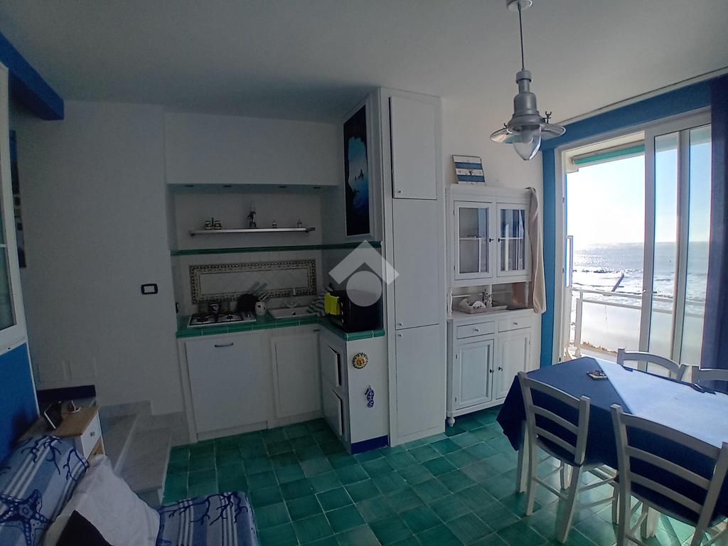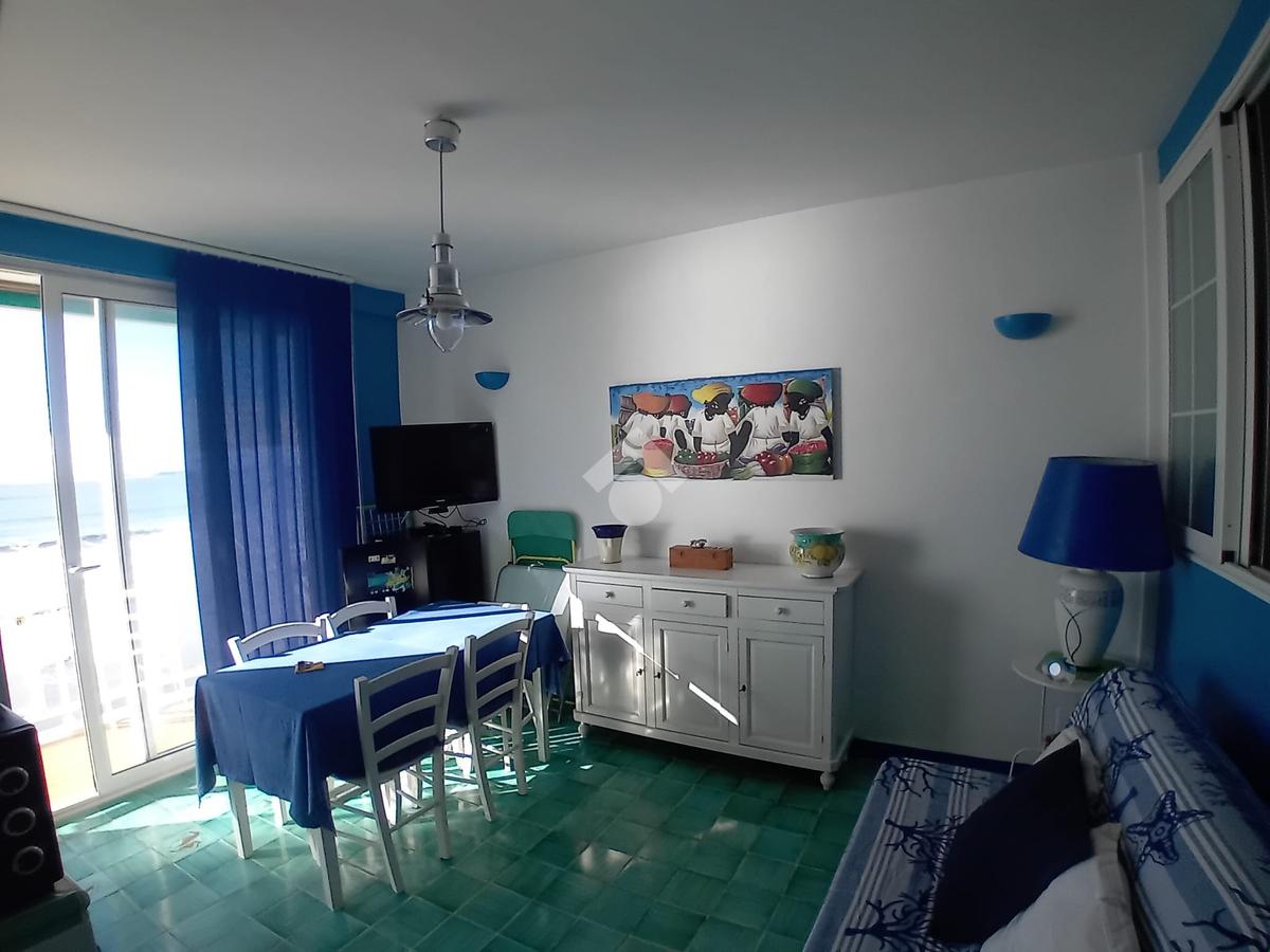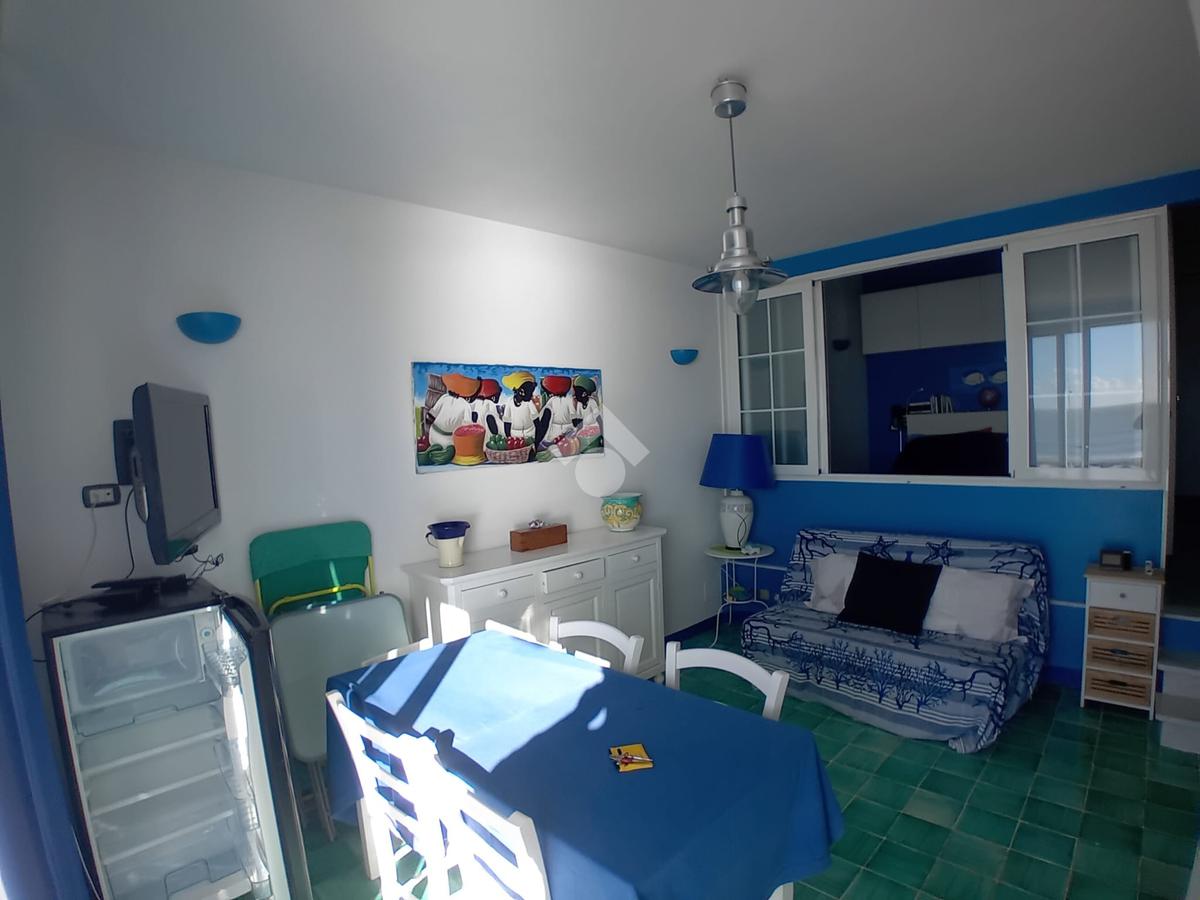 L'immobile è composto da: soggiorno con divano letto con vetrata vista mare, cucina a vista (dotata di lavastoviglie), camera da letto matrimoniale e bagno finestrato con doccia.