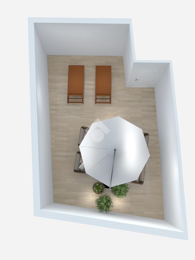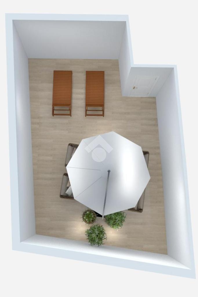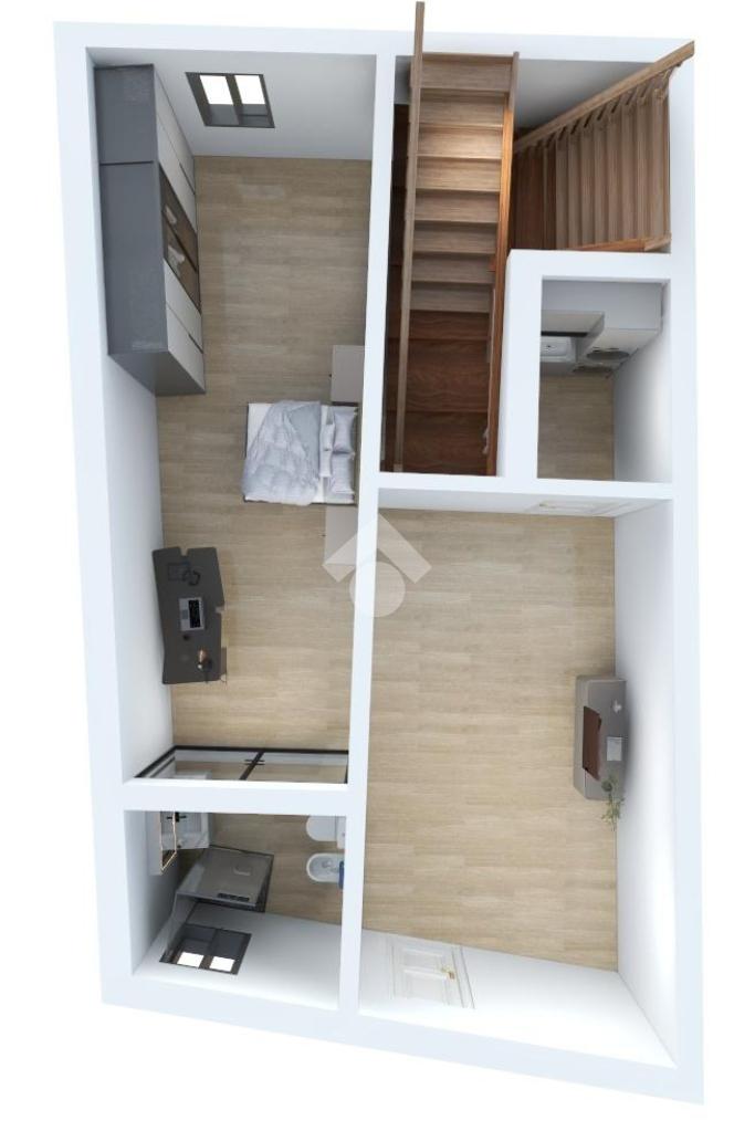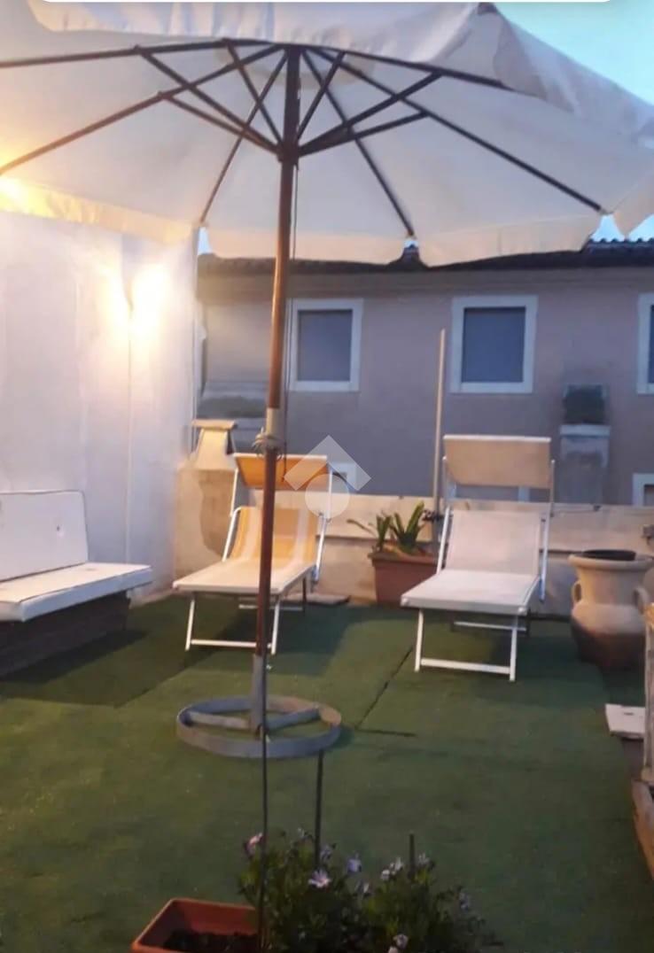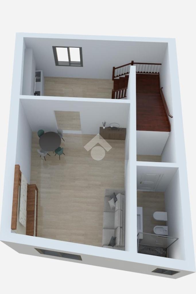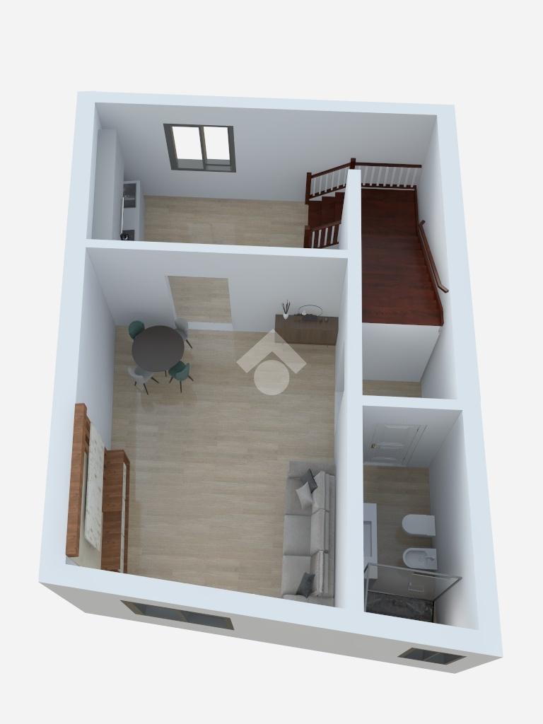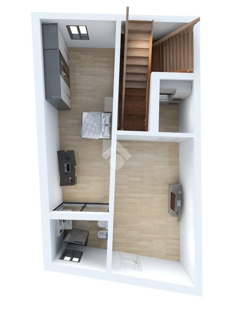 Salendo tramite una comoda scala con gradini originali dell'epoca, al primo piano accediamo ad un soggiorno con affaccio su via Andrea Sacchi e la cucina finestrata con vista su Via Stefano Porcari abitabile ed un bagno.