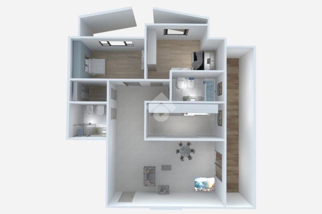 Varcando la soglia d'ingresso si accede all'ampio soggiorno con elegante cucina a vista, pratica e finemente attrezzata, dal quale, tramite porta finestra, si accede ad un balcone abitabile ideale per pranzi e momenti di relax all'aperto. Qui troviamo una parete cucina esterna attrezzata, impreziosita da un originale orto urbano in vaso a ridosso dei fornelli con sistema di irrigazione, due ripostigli di cui uno vano caldaia con spazio multiuso nella parte inferiore, una soluzione funzionale e scenografica che rende unico lo spazio esterno.