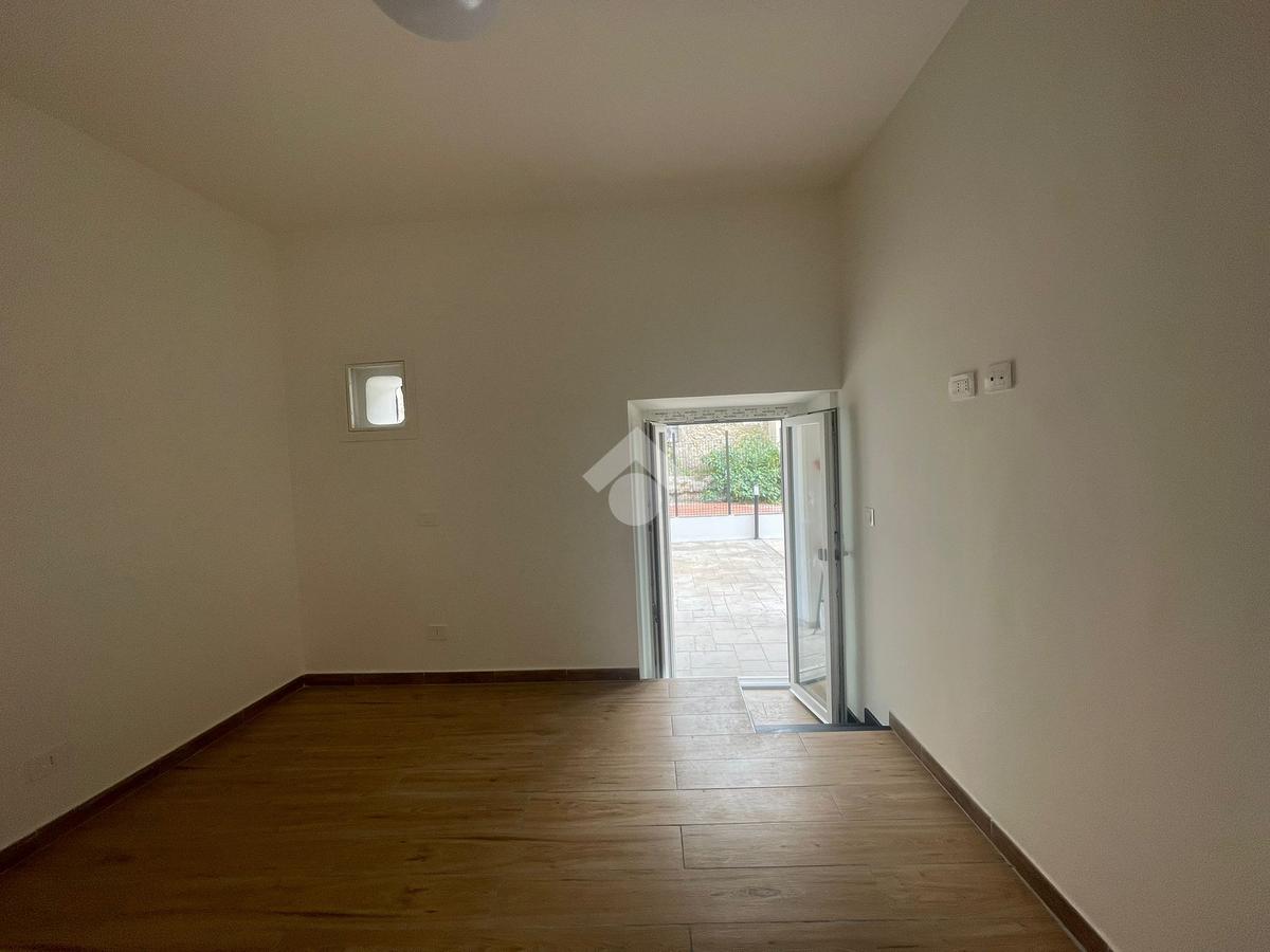 In pieno centro, disponiamo di splendido appartamento, posto al piano terra con corte mattonata ed entrata indipendente, completamente ristrutturato, con lavori terminati a metà Settembre 2025. Grazie agli interventi già realizzati, la casa si presenta moderna, efficiente e pronta per essere completata secondo i propri gusti. L'immobile è composto da: Soggiorno con angolo cottura, camera, cameretta con cabina armadio e bagno con doccia. La soluzione è dotata di citofono, certificazioni impianti, impianto dati, luci di emergenza, porte in legno, portone blindato, persiane blindate, controsoffittatura con faretti nella zona giorno, boiler per produzione acqua calda, riscaldamento e climatizzazione canalizzati centralizzati, allarme, illuminazone esterna ed attivazione domotica. Uno dei punti di forza dell'appartamento è la corte mattonata, uno spazio esterno prezioso per godere di momenti all'aria aperta. La posizione centrale garantisce facile accesso a tutti i servizi essenziali, come negozi, scuole e trasporti pubblici. Possibilità di visionare l'appartamento tutti i giorni previo appuntamento telefonico. Tel. 06/9807422 Whatsapp 3208577774.