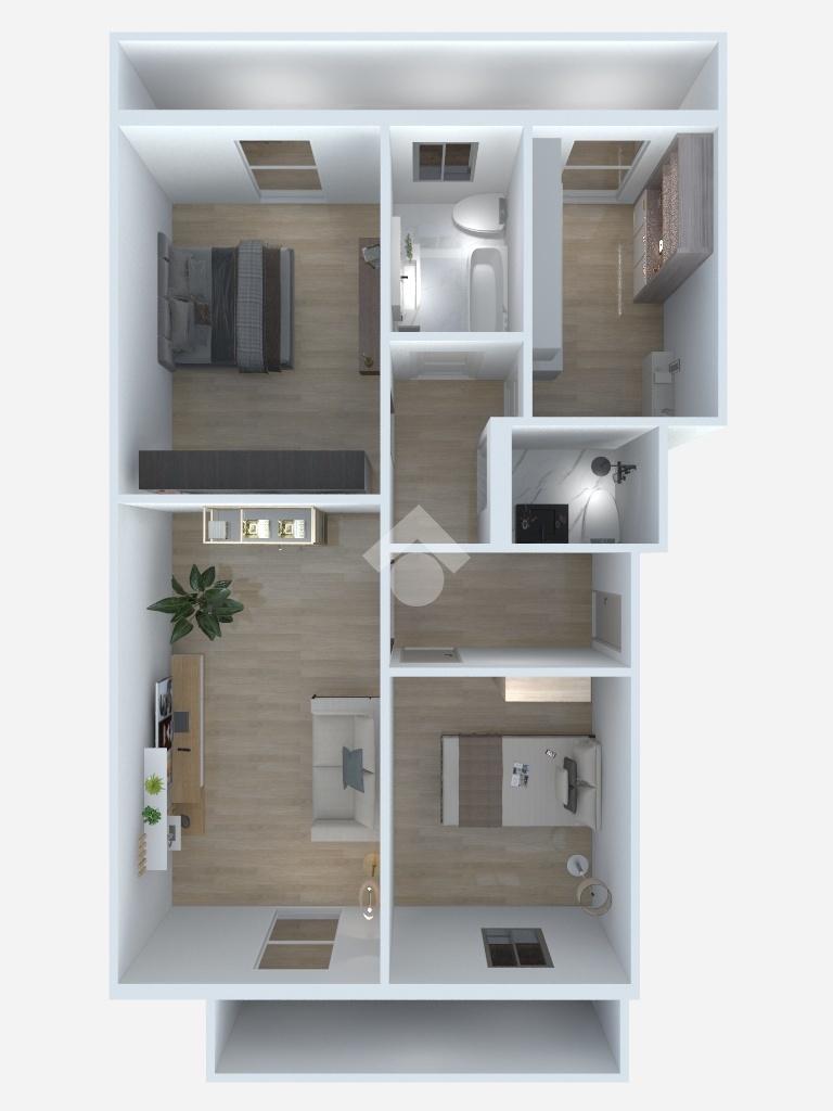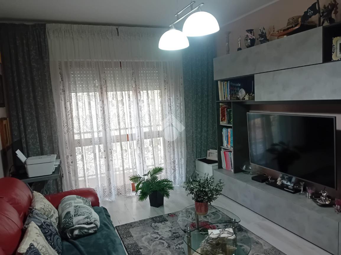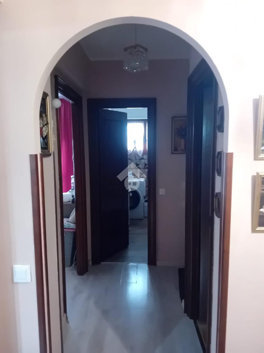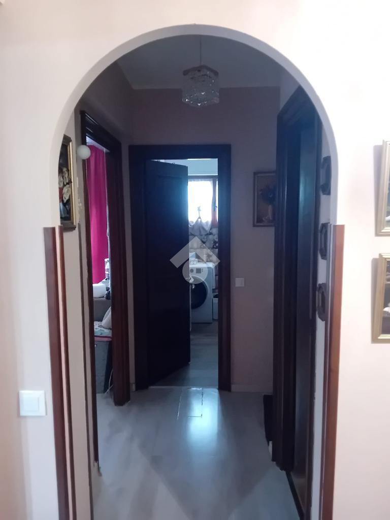 L'immobile è composto da un ingresso, salone con uscita su un balcone di 5,7 mq, cucina abitabile con uscita su un secondo balcone di 7,7 mq, disimpegno, 2 camere da letto, 2 bagni, di cui uno finestrato con vasca, mentre l'altro con doccia.