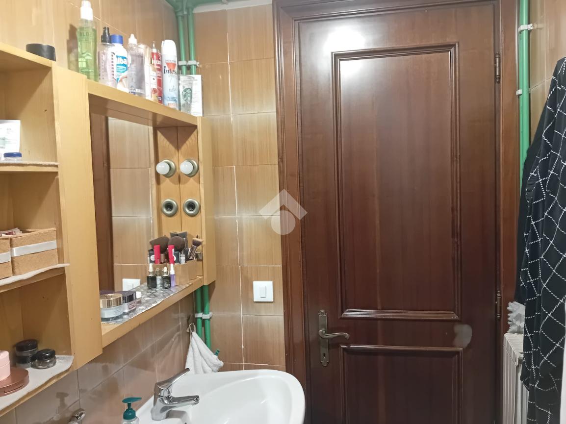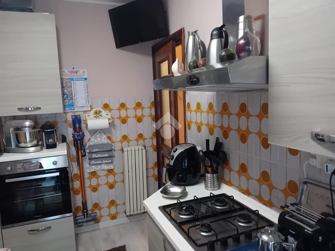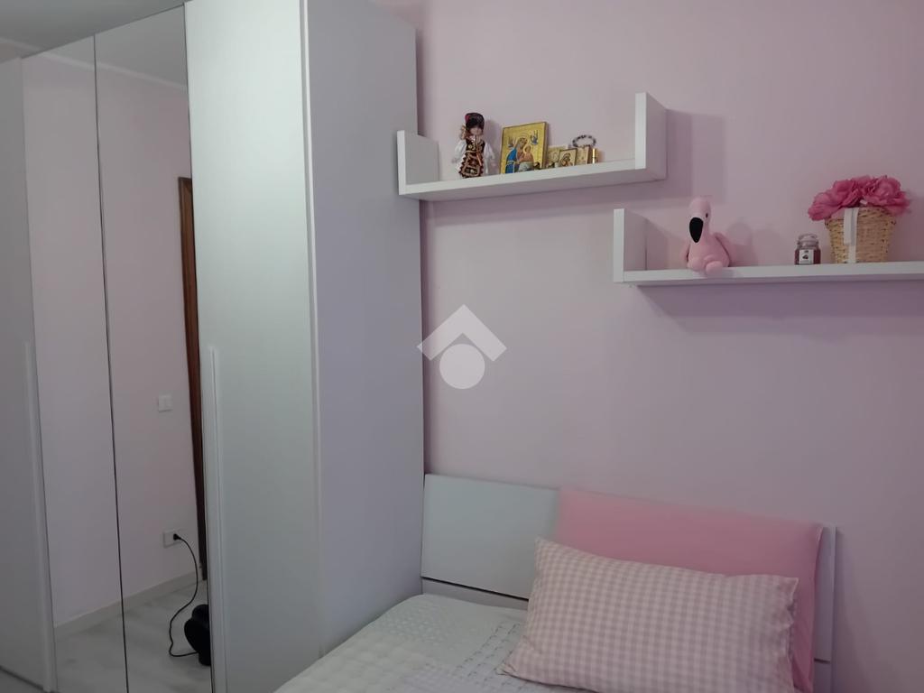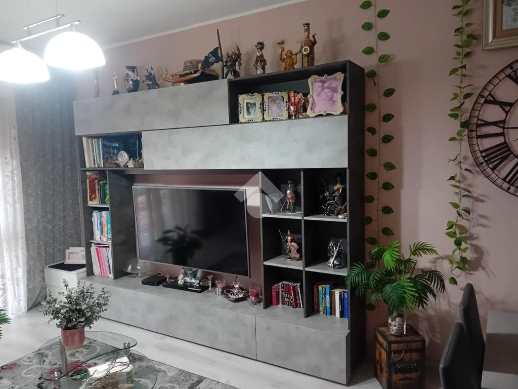 L'immobile è composto da un ingresso, salone con uscita su un balcone di 5,7 mq, cucina abitabile con uscita su un secondo balcone di 7,7 mq, disimpegno, 2 camere da letto, 2 bagni, di cui uno finestrato con vasca, mentre l'altro con doccia.
