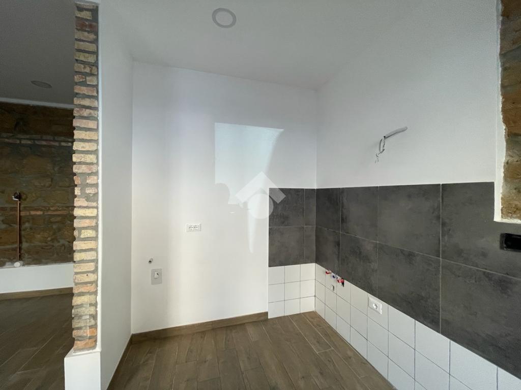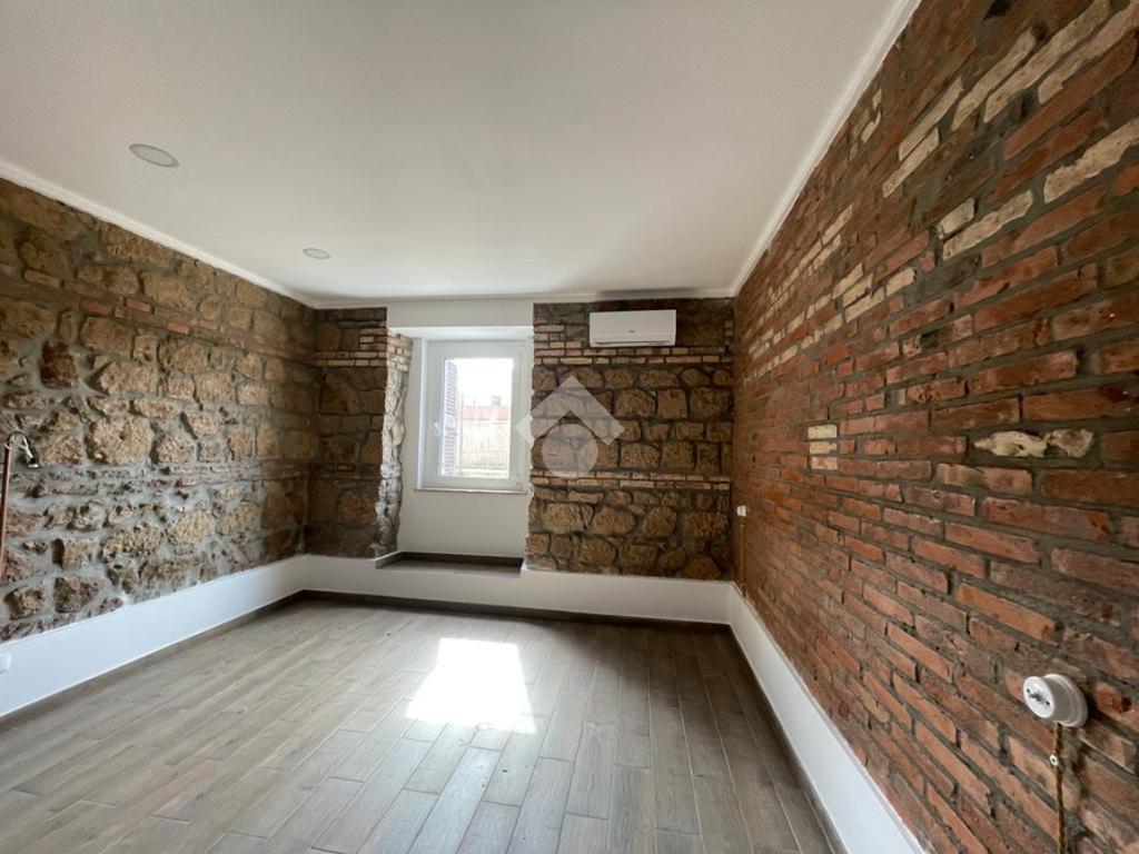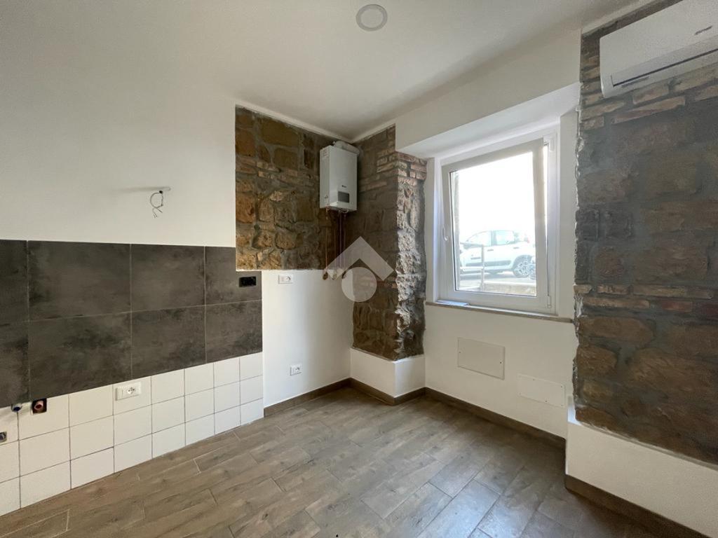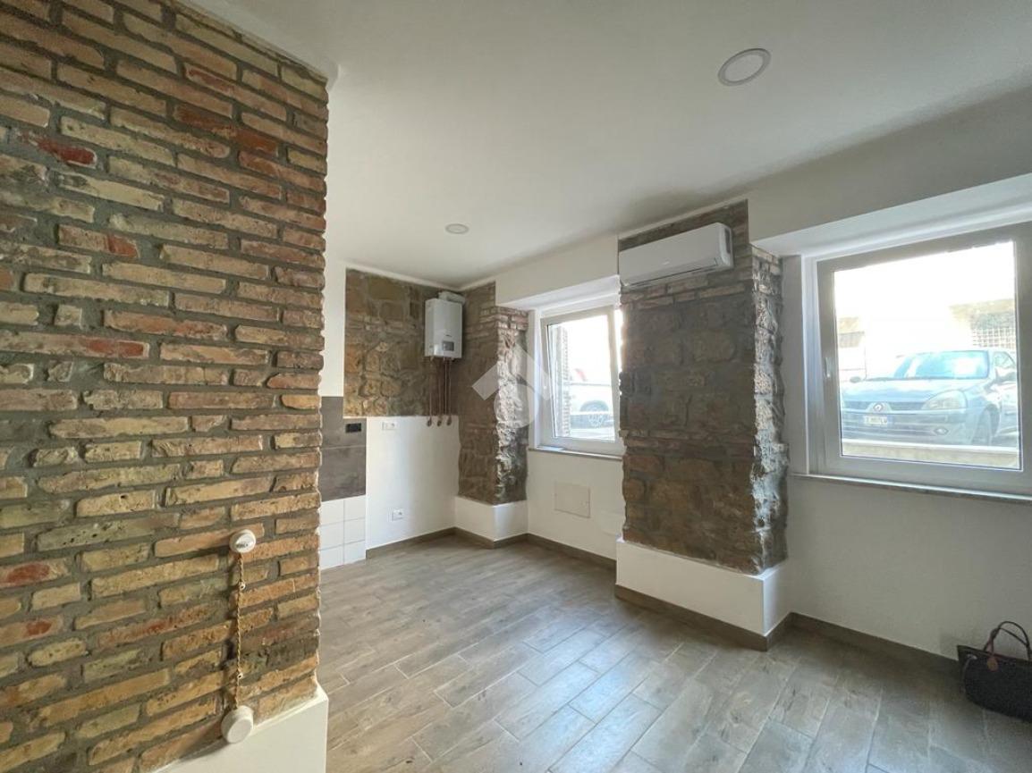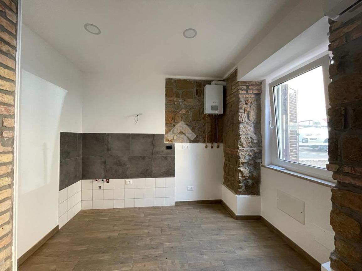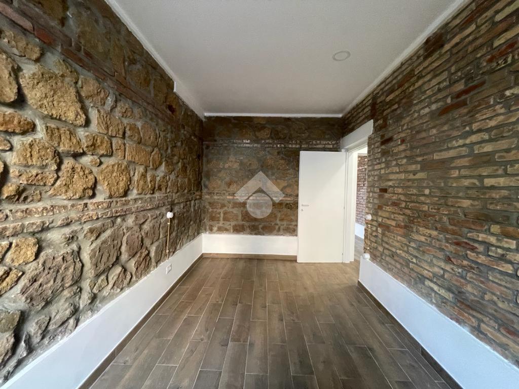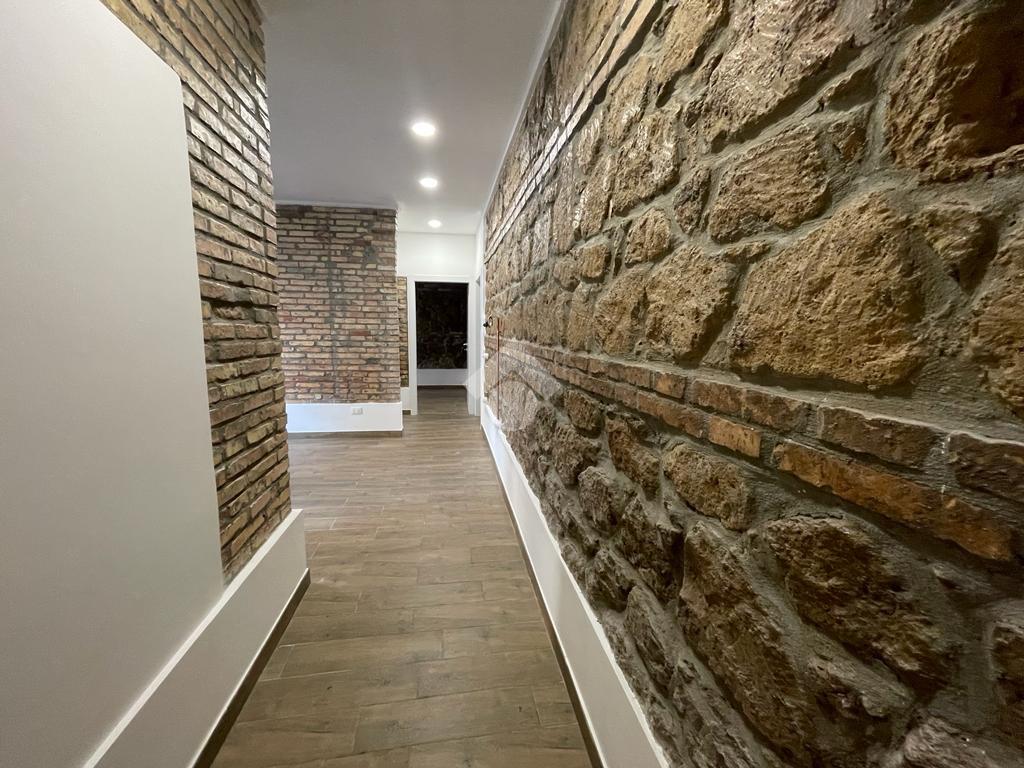Le pareti dell'immobile sono tutte in tufo romano a vista, i vantaggi di un materiale ecosostenibile, economico, traspirante e resistente al fuoco, soprattutto bello da vedere, esteticamente pregiato, il tufo a vista dona un aspetto rustico e storico unico.