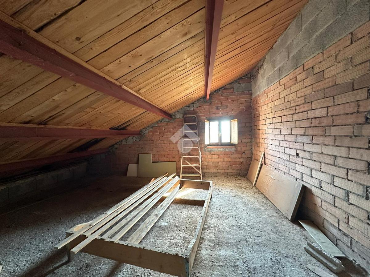 Salendo al primo piano, una mansarda di circa 128 mq, un disimpegno collega gli ambienti che comprendono due ulteriori saloni (rispettivamente di 23,4 mq e 15,6 mq), una cucina, un bagno e tre camere da letto, offrendo così la possibilità di creare una zona notte confortevole e ben distribuita.